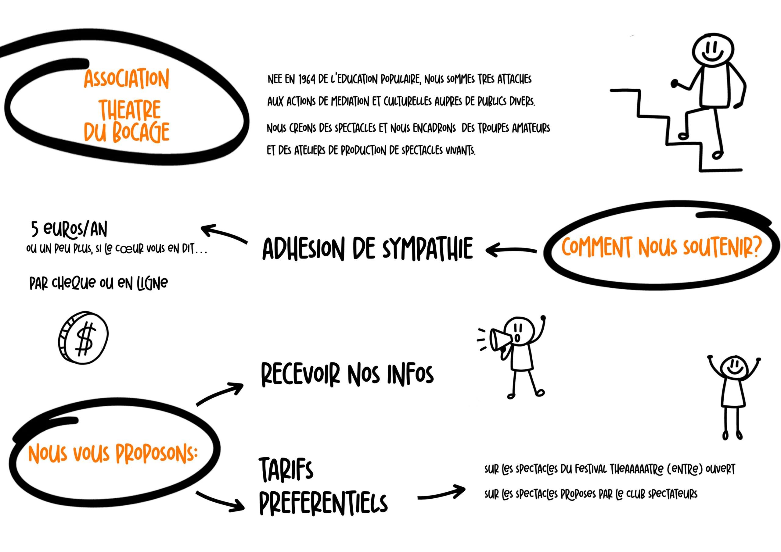 Soutenir notre association grâce à aux adhésions de sympathie, c’est nous aider à produire et diffuser des spectacles professionnels et amateurs ainsi qu’à vous proposer des ateliers et stages variés de qualité et accessibles. Nous soutenir Contact formulaire Téléphone 05 16 72 08 67 ou 06 27 07 69 33 MAIL infos@theatre-du-bocage.com